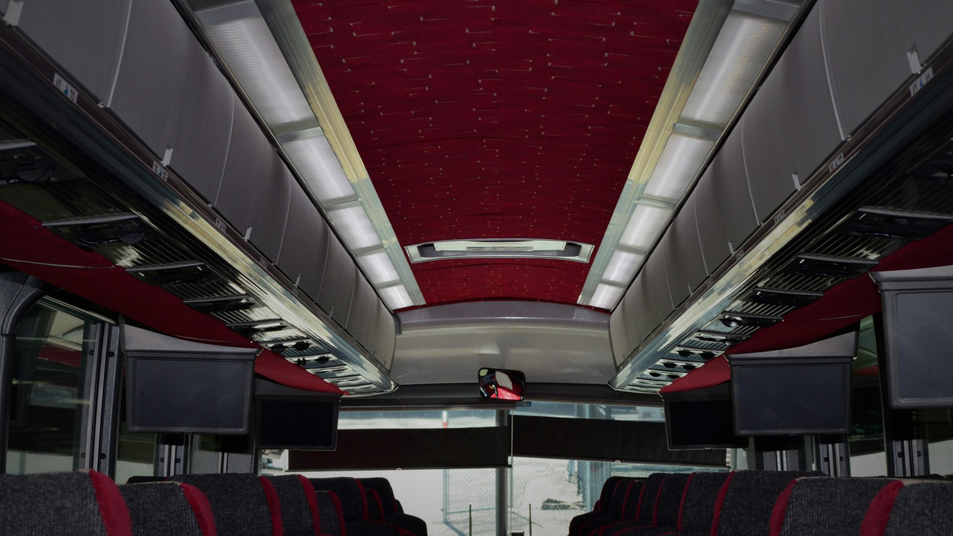 Barons Bus interior shot of center aisle to front