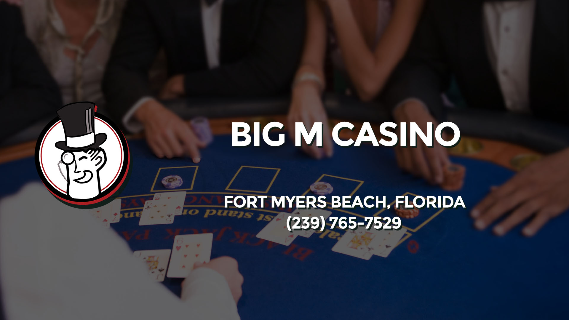 Casino & gambling-themed header image for Barons Bus Charter service to Big M Casino in Fort Myers Beach, Florida. Please call 2397657529 to contact the casino directly.)